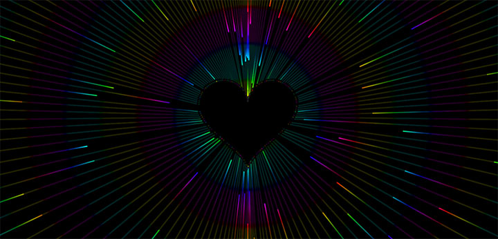 html5 canvas绘制一款炫酷的线条照射爱心发光动画特效,五颜六色的线条合成一个爱心动画效果。