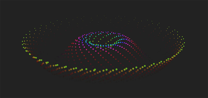 HTML5 Canvas绘制的3D弹性波浪声波动画特效,非常炫酷多彩的动画效果。
