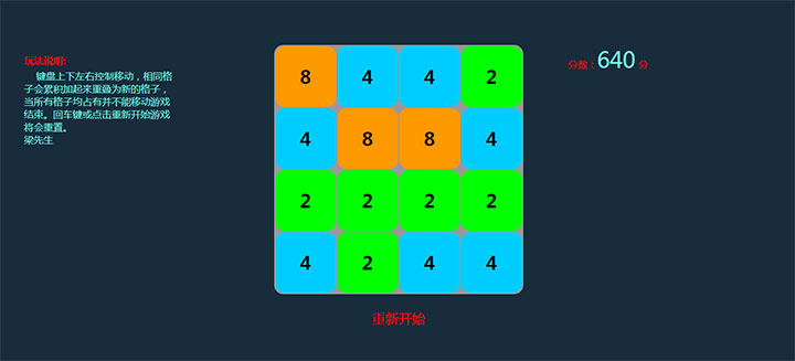 这是一款原生JS编写的2048小游戏代码,简单的2048网页小游戏,码农们可以学习开发方法也可以在线玩。