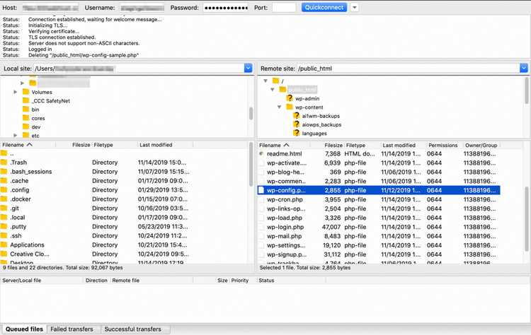 然后,使用FTP连接到服务器并找到wp-config.php: