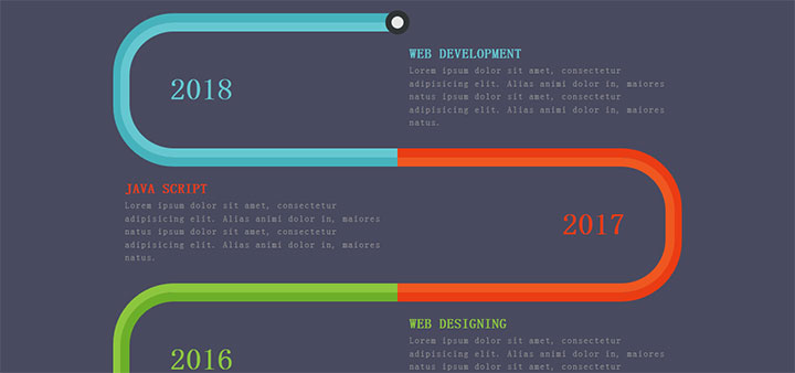 一款简单好看的CSS3响应式赛车跑道时间轴样式代码,这里是用来做个人技能介绍,也可以用来做企业发展历程时间轴。