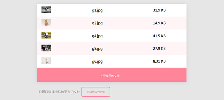 jQuery选择或拖拽批量上传文件插件是一款可以直接拖拽图片到指定区域或浏览选择上传文件,并显示预览图片和信息,支持多种图片格式上传。
