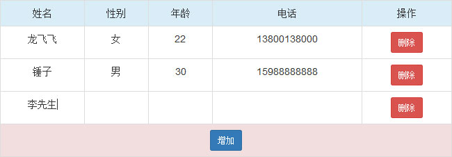 一款简洁实用的自适应PC手机端的jQuery可编辑表格代码,jQuery表格添加删除行数据代码,使用起来十分的方便。