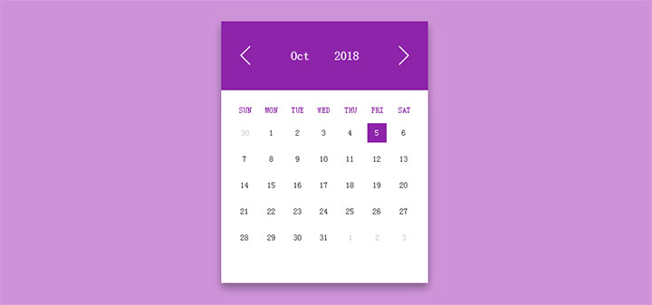 一款非常漂亮的HTML5+CSS3背景变色日历表切换代码,每个月份的日历表背景颜色都不同哦。