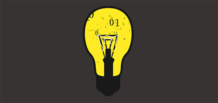 一款创意个性HTML5 Canvas灯泡动画特效,瓦斯灯泡内0和1二进制代码不断发散弹出并掉落。