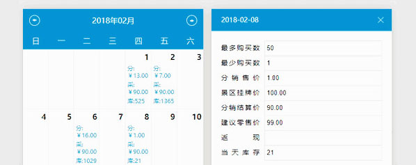 一款非常美观实用的兼容手机端的jQuery日历设置当天价格库存插件代码,jQuery交互式日历插件下载。