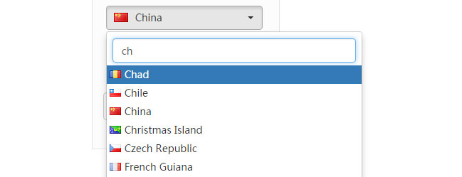 这是一款非常不错的jQuery下拉框国家选择代码,支持搜索功能、显示国旗图标的全世界国家下拉选择代码。