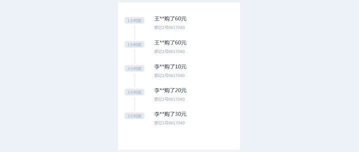 这是一款简单实用的jQuery购买记录列表文字滚动更新代码,可用于用户购买订单记录滚动轮播展示使用,每次向下滚动更新一条记录。