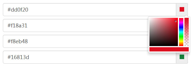 一款功能强大的jQuery颜色拾取器插件,实用的jQuery网页颜色选择器代码,允许选取颜色,它提供多种颜色格式hex, rgb,rgba,hsl,hsla,并提供功能强大的API来控制颜色拾取器。