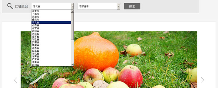 这是一款适用于网络营销,查询连锁店铺全国网点的jQuery省市二级联动关联店面查询表单代码,主要还是城市联动下拉选择菜单效果,查询结果还得程序里自己具体实现。