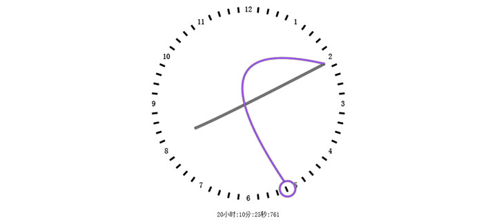 一款圆形的HTML5 Canvas创意个性化时钟动画特效,指针非常有特色,圆形时钟下方还有数字时钟显示。