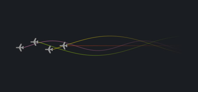 一款优美的HTML5 Canvas飞机线条弧度飞行动画特效,适用于动态网页背景特效。