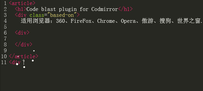 非常酷炫的一款HTML5在线代码编辑器输入动画特效,有固定的格式化和样式显示,输入时有爆炸和震动动画效果。