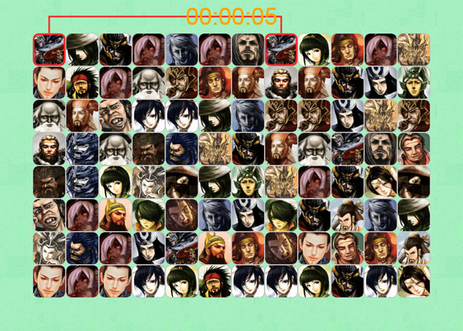 js版三国杀版连连看网页游戏代码是一款连连看游戏,头像为三国杀中的人物。