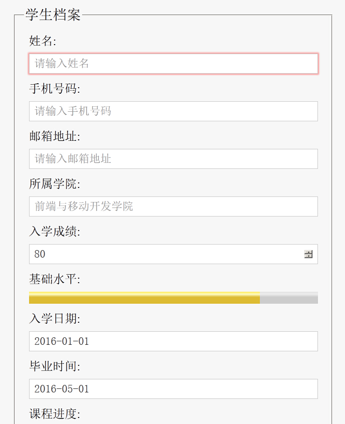 这是一款使用的学生档案记录表单代码,支持提交内容时自动验证手机号跟邮箱,CSS设计的学生档案录入表单样式。