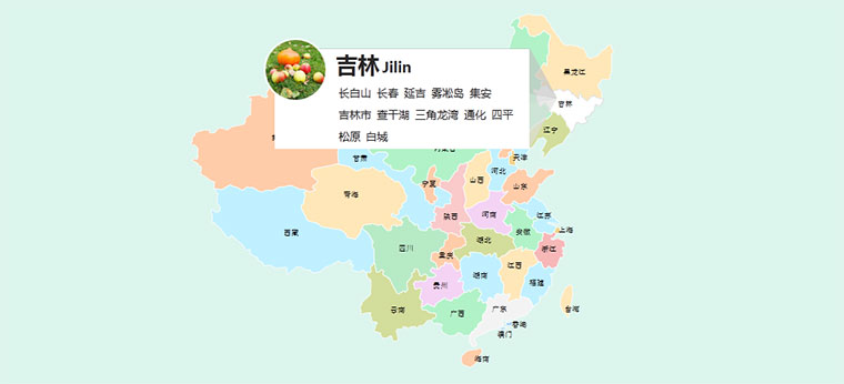 这是一款基于jQuery+html5 svg实现的中国地图悬停显示省市代码,SVG中国地图导航(因百度使用flash技术制作,所以特效上很难达到百度那种效果)