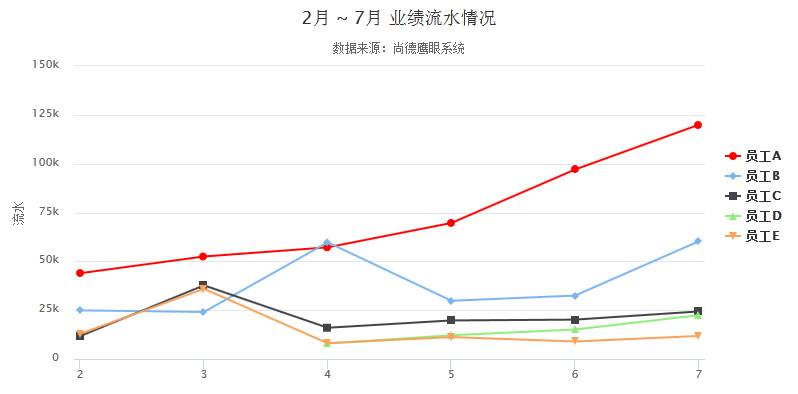 一款基于highcharts.js插件的员工业绩流水折线图数据图表代码,员工业绩流水情况折线图js代码。