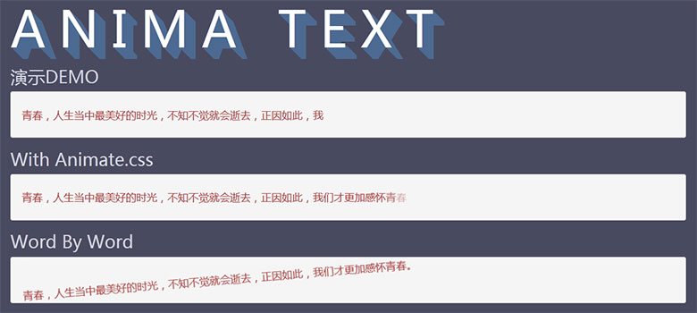 基于css3 animate样式表制作多种好看的文字动画效果,jQuery酷炫网页文字动画特效,CSS3文字动画插件。