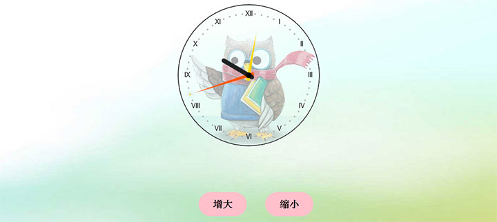一款可以放大和缩小的html5猫头鹰时钟特效,利用canvas绘制的网页时钟,猫头鹰的眼睛跟随秒针转动,非常有趣。