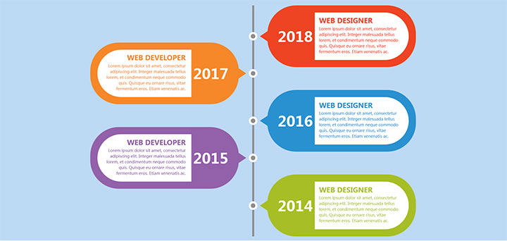 一款多彩风格的创意响应式CSS3垂直时间轴样式布局代码,纯CSS3制作的纵向时间轴样式,电脑手机端可通用。