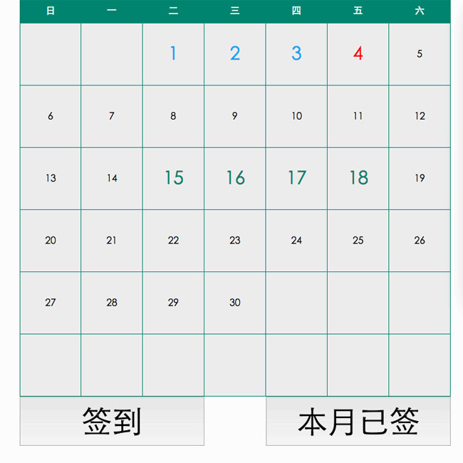 jQuery每日签到功能日历代码是一款简单实用的带有网页每日签到功能的日历特效。
