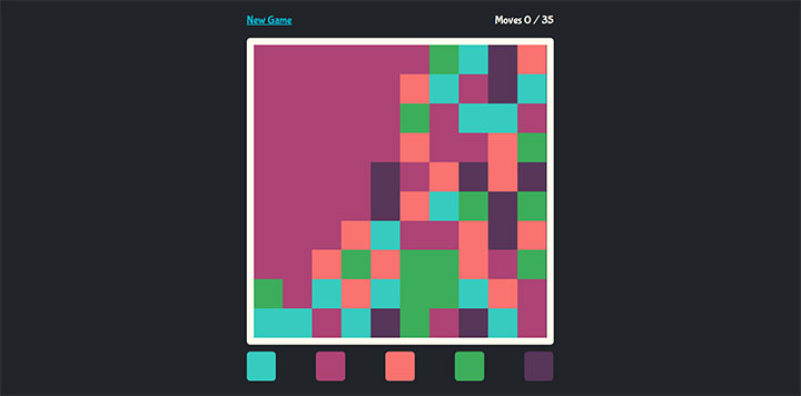 非常简单好玩的一款HTML5颜色匹配网页小游戏代码,点击下方色块同化周围色块,将所有颜色变换成一种颜色就赢了。