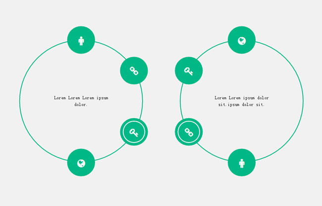jQuery节点分布圆形循环信息展示代码是一款可以设置自动循环播放信息在中间切换展示,也可以让用户手动点击展示信息。