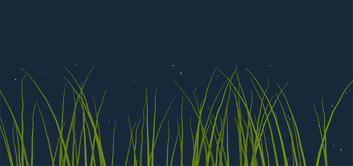一款非常好看的html5 canvas海底冒泡的海藻水草动画场景,深海底绿色水草摆动动画特效,还有气泡冒起来。