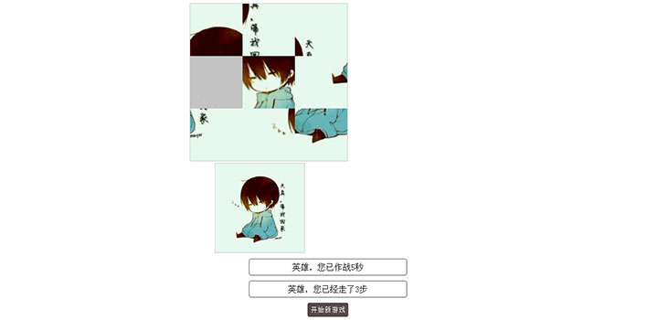 这是一款简单好玩的jQuery人物图片拼图游戏代码,点击开始游戏随机打乱图片,有时间和操作步数记录。