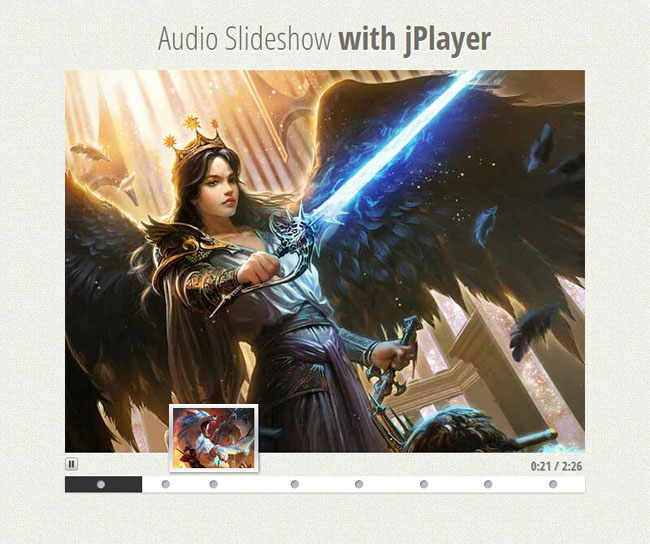 这是一款jQuery带图片切换效果的网页音乐播放器代码,图片幻灯片切换类似视频网站拖动查看视频截图功能,拖动到特定位置,显示不同的图片。
