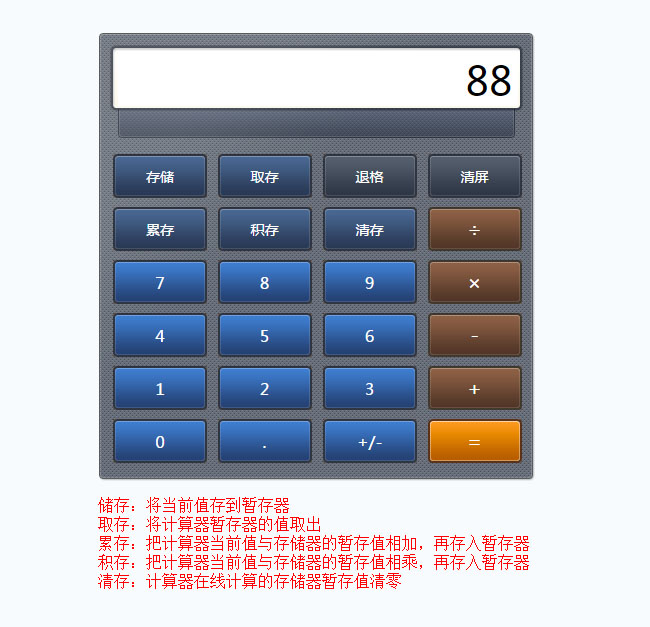 加减乘除在线网页计算器js代码是一款支持键盘输入和兼容IE8的计算器特效。 为您提供计算器在线功能(只实现加减乘除计算)。