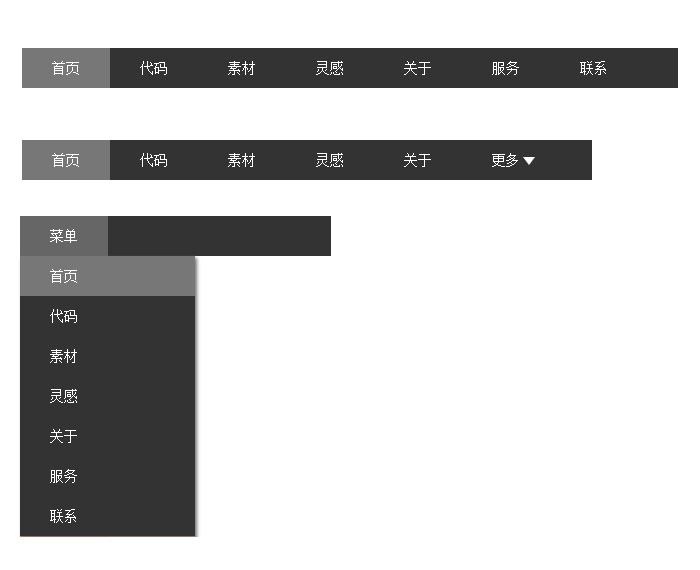 jQuery响应式三款不同皮肤导航菜单,鼠标悬浮上去,会高亮显示当前菜单。