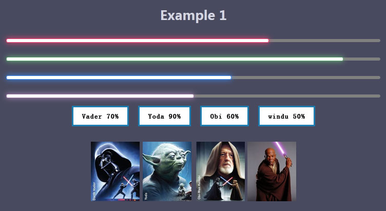 很有创意使用彩色霓虹效果,jQuery仿造星球大战中的激光剑效果的水平进度条代码,jQuery百分比进度条动画特效。