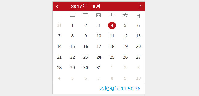 这是一款带本地时间简洁实用的jQuery日历代码,jQuery日期时间选择查看代码。