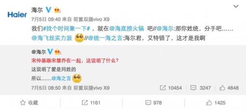每个品牌还是需要有自己的人设定位的,并不是说所有做网生内容传播的,都要天天在微博微信上写段子卖萌,生搬硬套网络流行语。过度的卖萌或娱乐化容易造成用户反感。