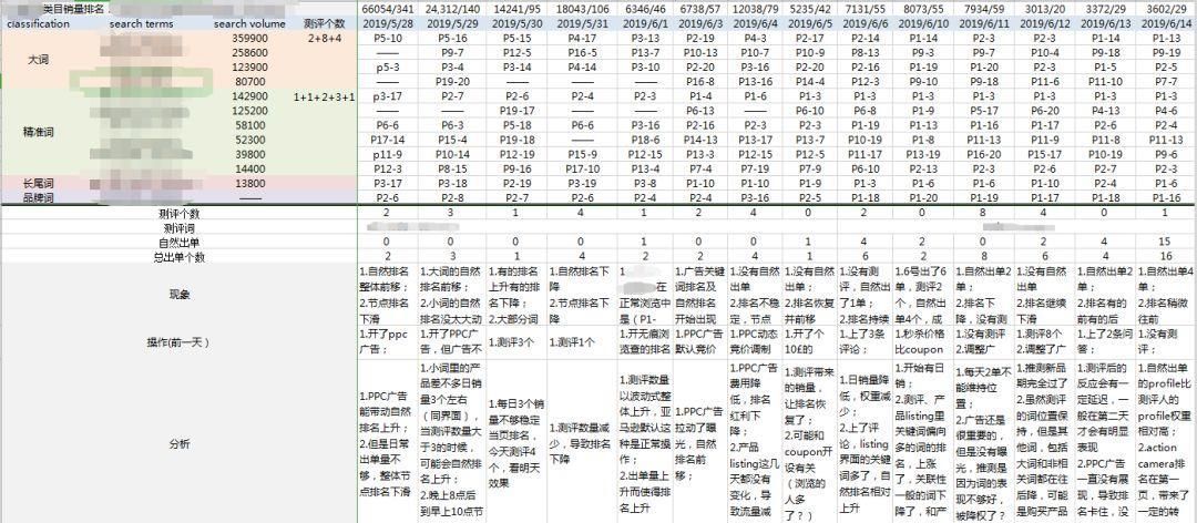 比如你打算做测评推新。那么你选择做什么词,每天测几个,测完之后当日整体出单量是多少,第二天自然排名在什么位置,这个日出单量是否撑得起这个位置,都是可以从统计的这些数据看出来的。