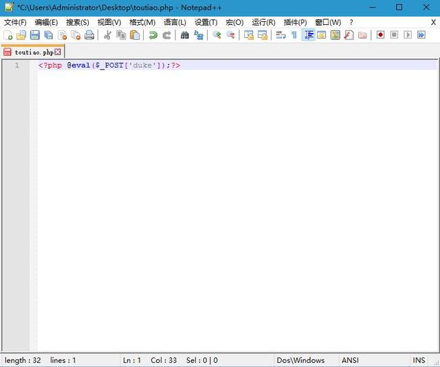 1、这是一个php文件,里面就一段话。就是我们所说的一句话木马