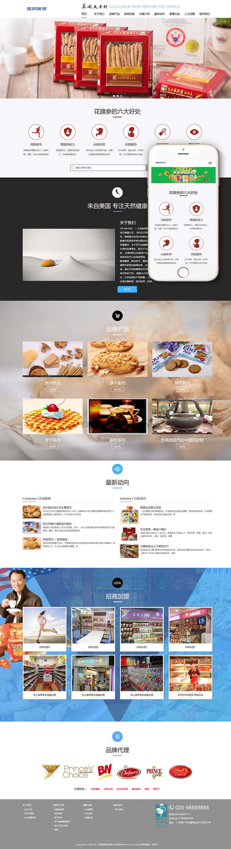 响应式西洋参人参保健品类网站织梦模板(自适应手机端)