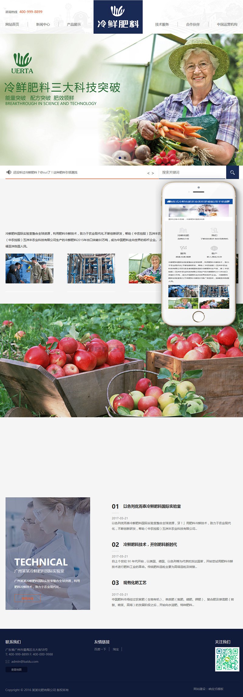响应式冷鲜化肥农业类织梦模板(自适应手机端)