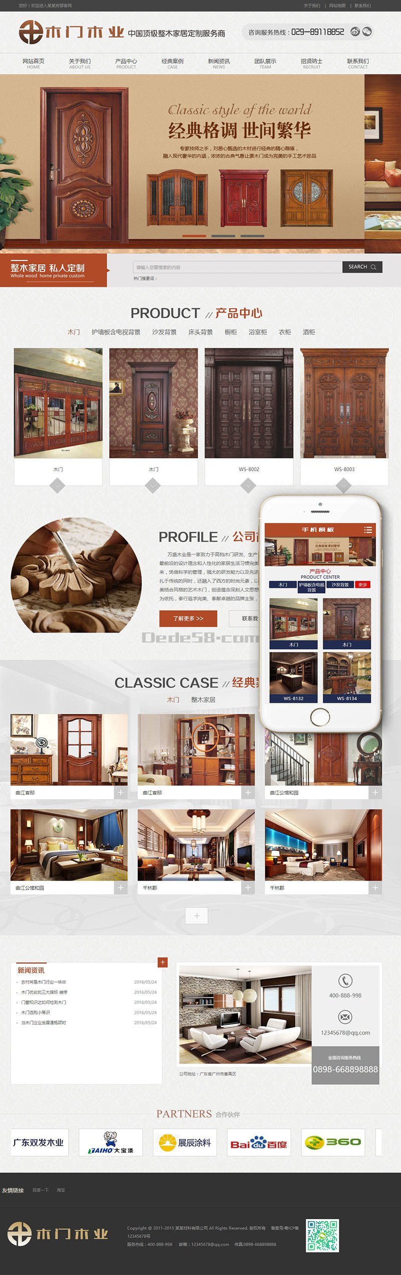 古典复古木材木门木业类网站织梦模板(带手机端)+PC+wap+利于SEO优化