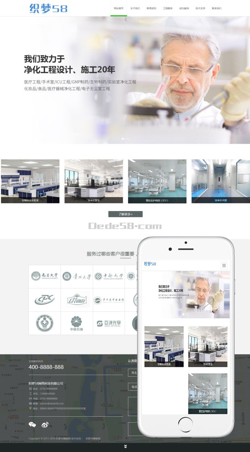 织梦最新内核开发的模板,该模板属于HTML5响应式、医疗净化工程类企业使用,一款适用性很强的模板,基本可以适合各行业的企业网站!