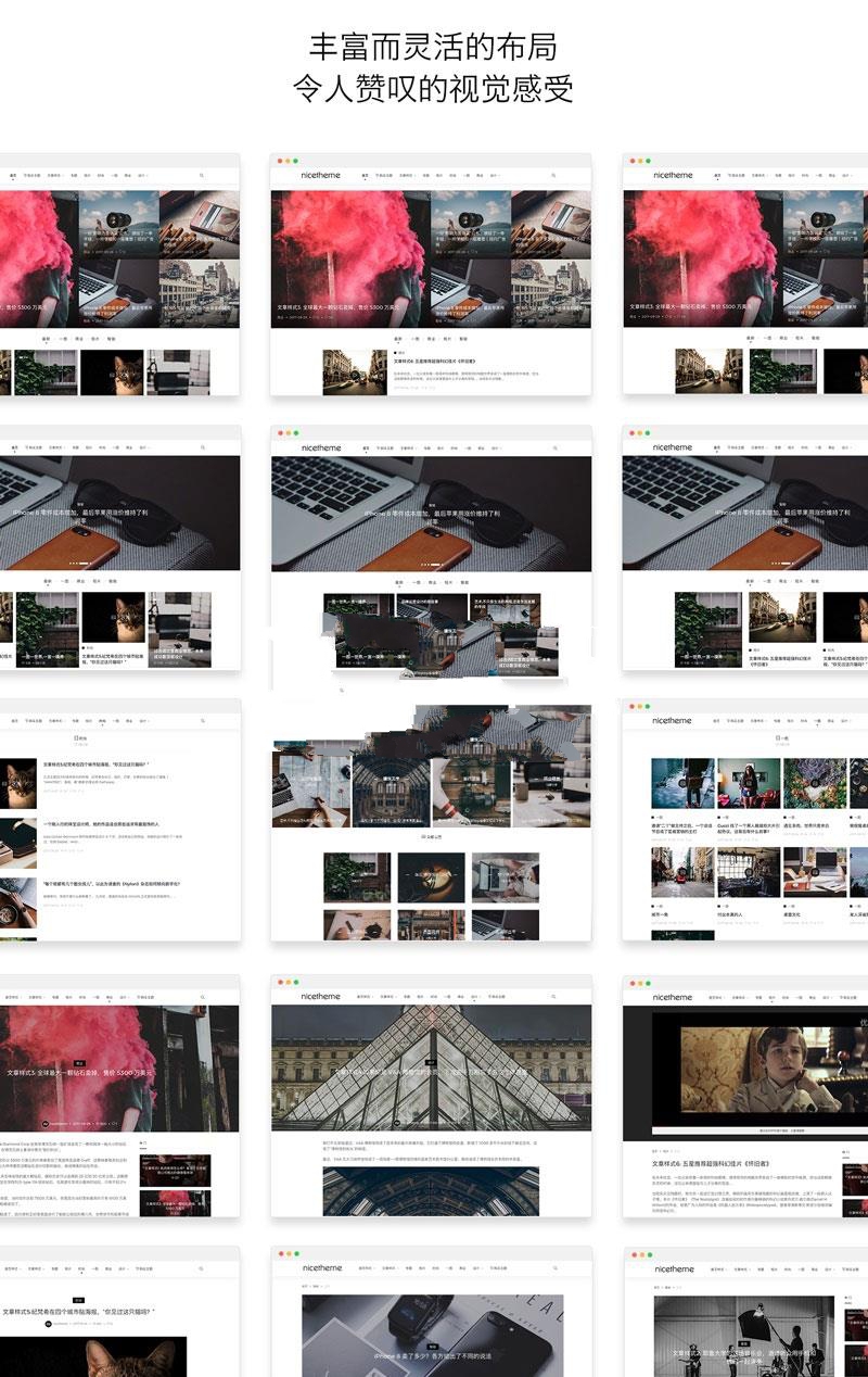 首页顶部提供2种展示文章方式,文章幻灯片展示和杂志式展示,任意切换
