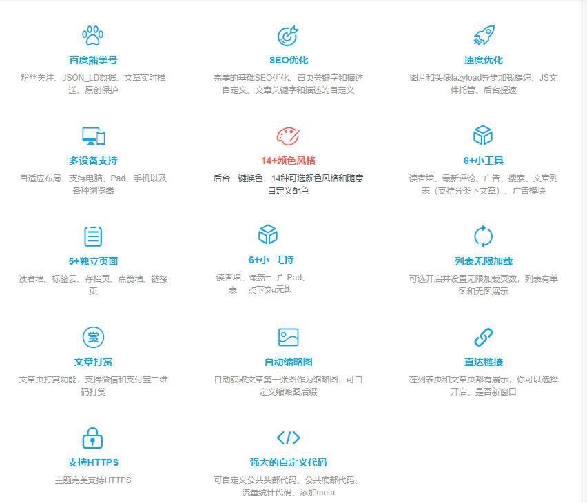 侧栏随动:每种页面可设置不同的侧栏随动模块,首页、分类/标签/搜索页、文章页、页面可以不一样