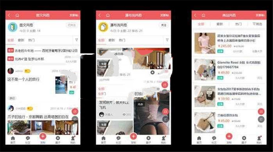 5、更新主题列表风格(智能风格、新闻风格、圈子风格、图文风格、微博风格、大图风格、视频风格、音频风格、商品风格、投票风格、活动风格、辩论风格、悬赏风格),新增朋友圈风格和两列图片风格