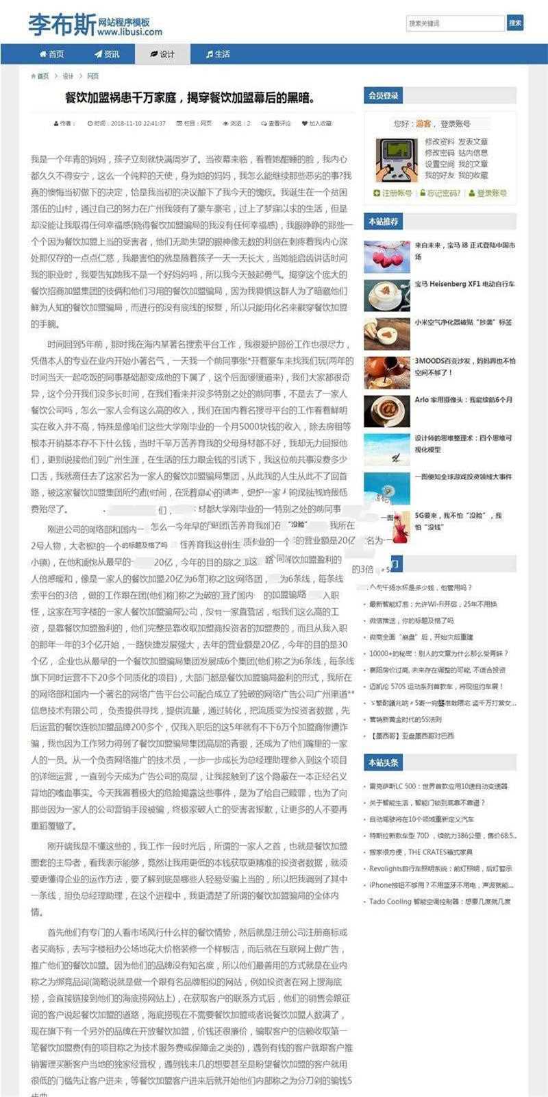 网站项目使用帝国,的CMS 7.5 UTF-8,手机上的显示屏非常漂亮。它包含大约100,000篇文章。