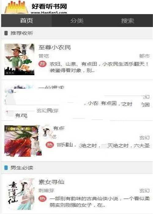 • 92仿《好看听书》手机版网站源码在线有声图书机车收藏7G语音小说资料_源码下载