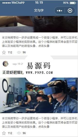 • 微信小程序文与字信息列表资讯阅读demo完整源码下载