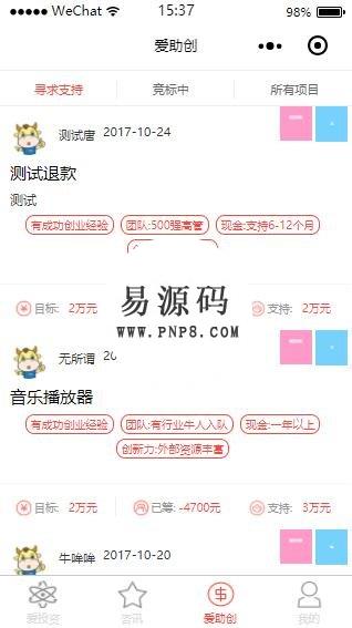 • 微信小程序爱投资助创金融资讯demo完整源码下载