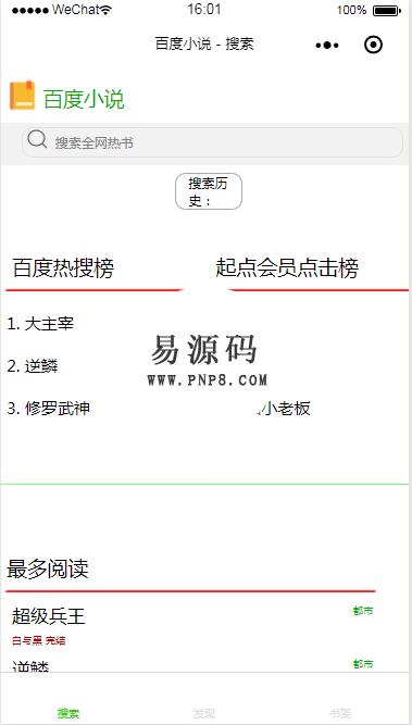 • 微信小程序仿百度小说demo源码下载
