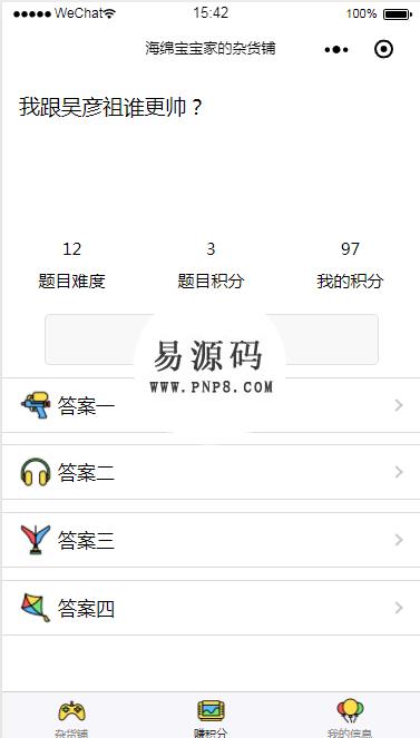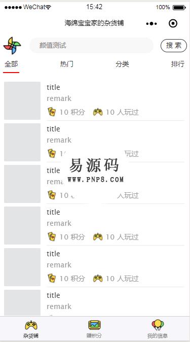 • 微信小程序海绵宝宝杂货铺demo完整源码下载